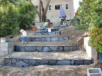 Our 3 yr old can be seen surveying the job site from the slate steps below:) |